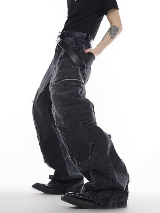 DAMAGE PATCHWORK BLACK DENIM PANTS MNW17